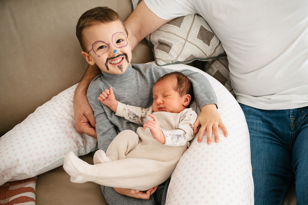 Anfangs Jahr hatte ich ein Babyshooting mit dieser tollen Familie. Sie sind nicht einfach nur vor meiner Kamera gesessen und haben auf meine Anweisungen gewartet, sondern es wurde dazwischen auch gespielt, Fasnachtsschminke ausprobiert, gestillt, gewickelt und Zvieri gegessen. Und genau so liebe ich Fotoshootings am meisten. Ihr müsst nicht denken, oh jetzt haben wir ein Fotoshooting, jetzt müssen wir schön vor der Kamera bleiben. Nein, ihr dürft bei mir das machen worauf ihr Lust habt und ich begleite euch mit der Kamera. Dies ist besonders angenehm für Kleinkinder, die lieber das machen was sie möchten anstatt auf Anweisungen zu hören.